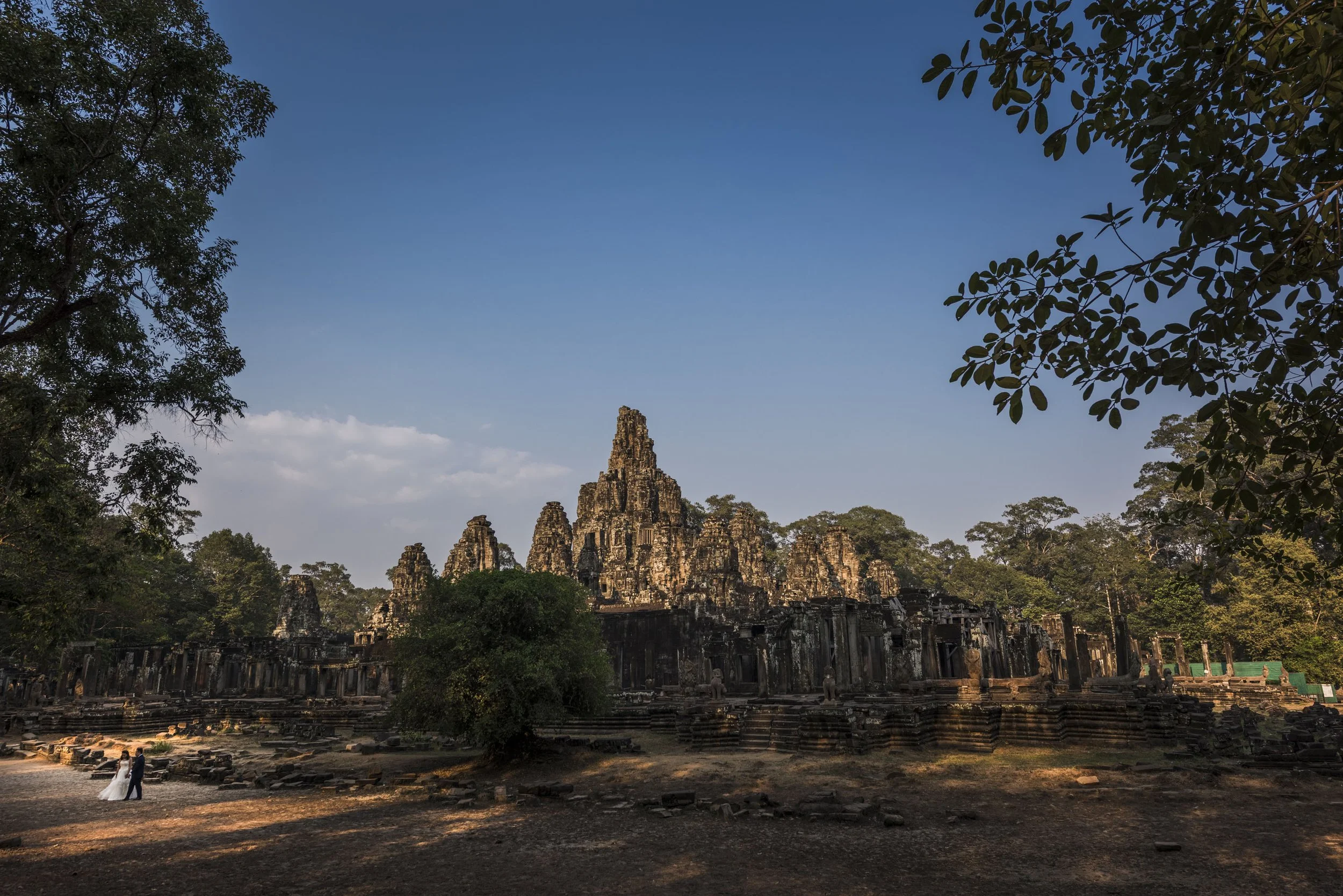 Considered the largest religious monument in the world, Angkor Wat was built in the early 12th century by King Suryavarman II as a Hindu temple dedicated to Vishnu. Designed to symbolize Mount Meru, the cosmic mountain at the center of the universe, it extends across more than 160 hectares, surrounded by an immense moat. Over the centuries, it gradually transformed into a Buddhist sanctuary, becoming a living reflection of Cambodia’s spiritual evolution. Today, its five lotus-shaped towers and endless galleries of bas-reliefs remain one of the most powerful symbols of Khmer culture and resilience.