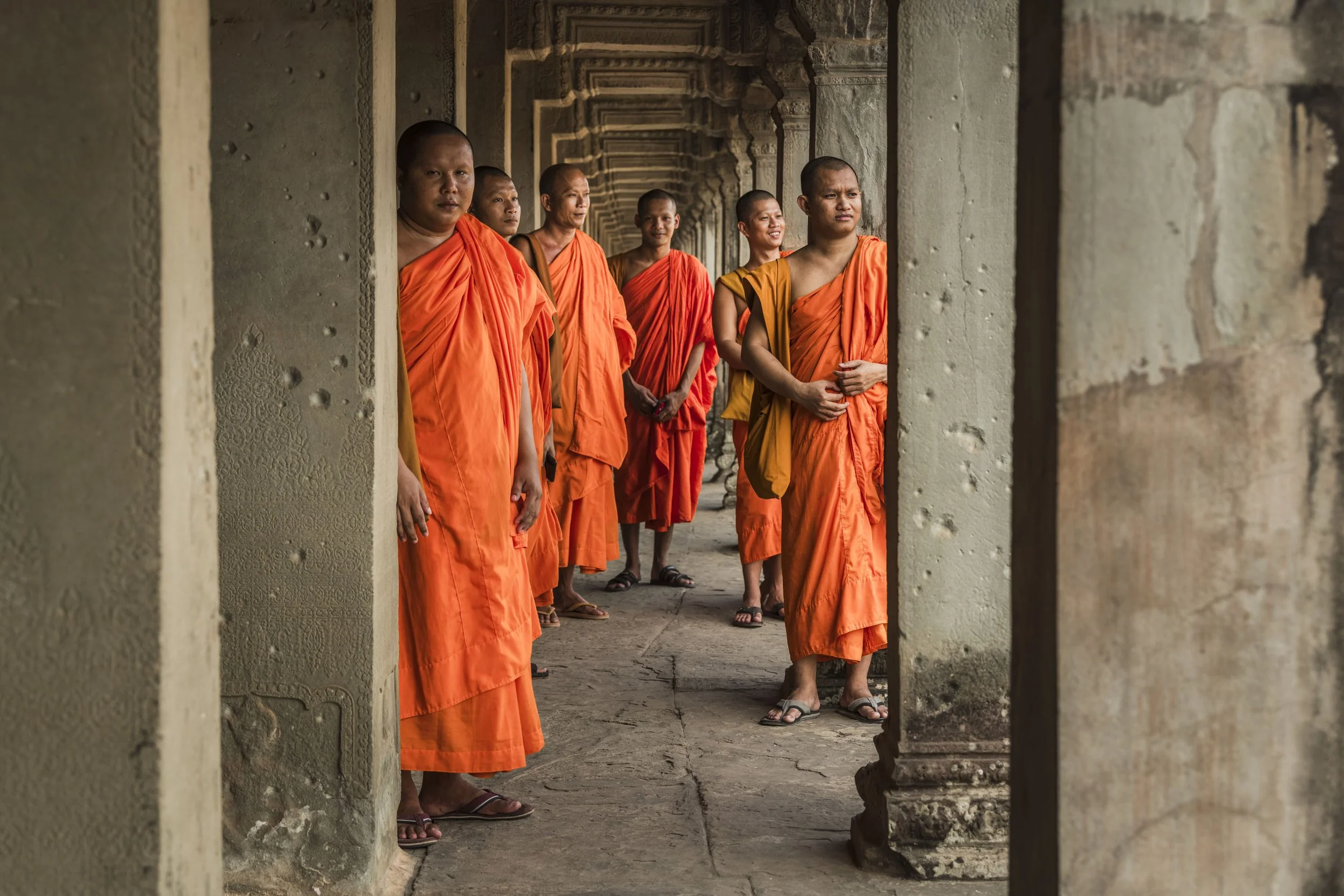 My first day in Angkor unfolded between encounters with monks and the timeless embrace of the jungle. As I wandered through the ruins, the sight of orange-robed monks moving quietly among ancient sculptures added an almost surreal sense of spirituality. Their presence transformed the broken stones into something alive, as if the temples were still breathing.