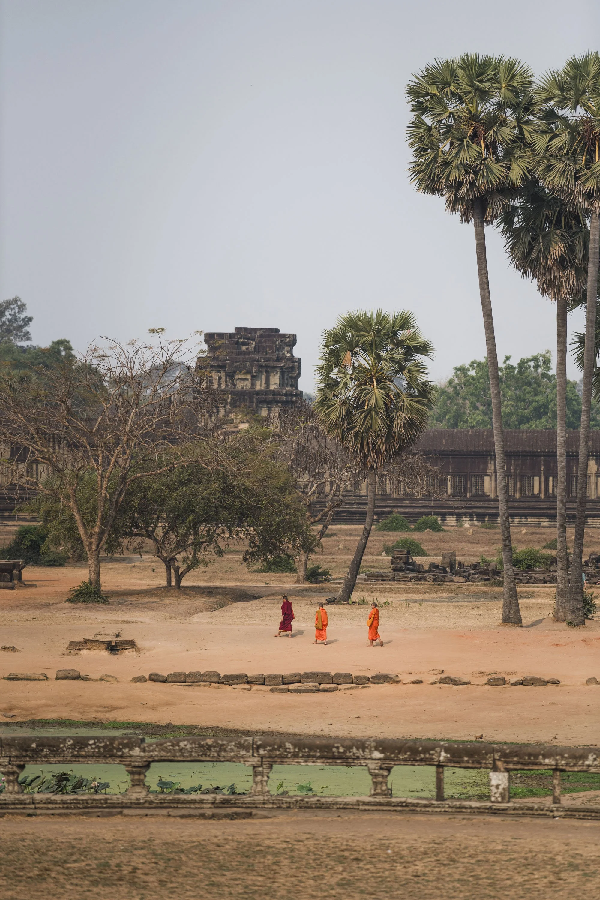 The second day began before dawn, standing by the wide moat of Angkor Wat. As the sky shifted from deep blue to soft pink, the reflection of the temple’s five lotus-shaped towers appeared in the still waters — one of the most iconic sunrises in the world. The atmosphere was both serene and powerful, especially with groups of young monks in saffron robes walking along the shore, their presence reminding me that Angkor Wat is not only a UNESCO monument but also a living place of devotion.